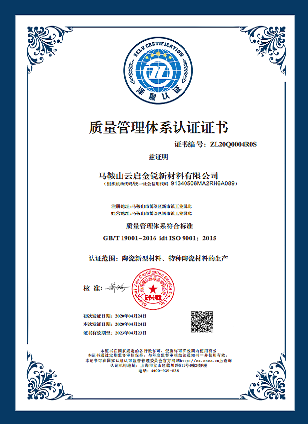 嚴格按照ISO9001-2008質量標準管理,并制定了遠高于行業標準的公司產品執行標準,保證質量穩定追求更好的性能品質,公司的產品質量標準主要體現在純度、分散性、球形度、密度、晶粒度、力學強度等。